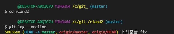하위 폴더인 (깃에서 실제로 사용하는 폴더) rland2에서 log를 확인하니 가능했다.