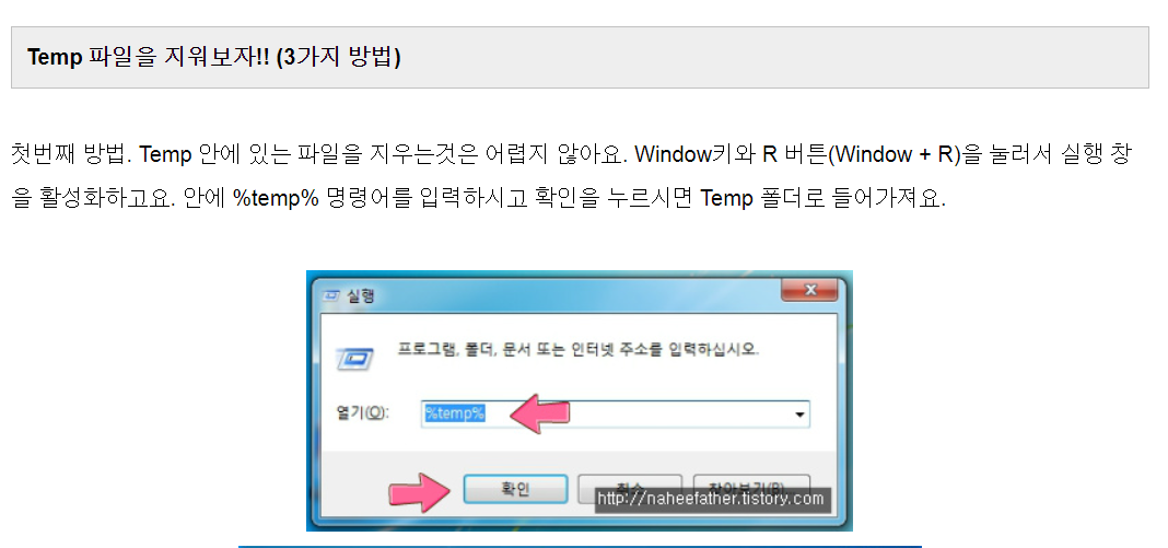 컴퓨터 느려짐 Window temp 파일 삭제하고 하드용량 찾아오기