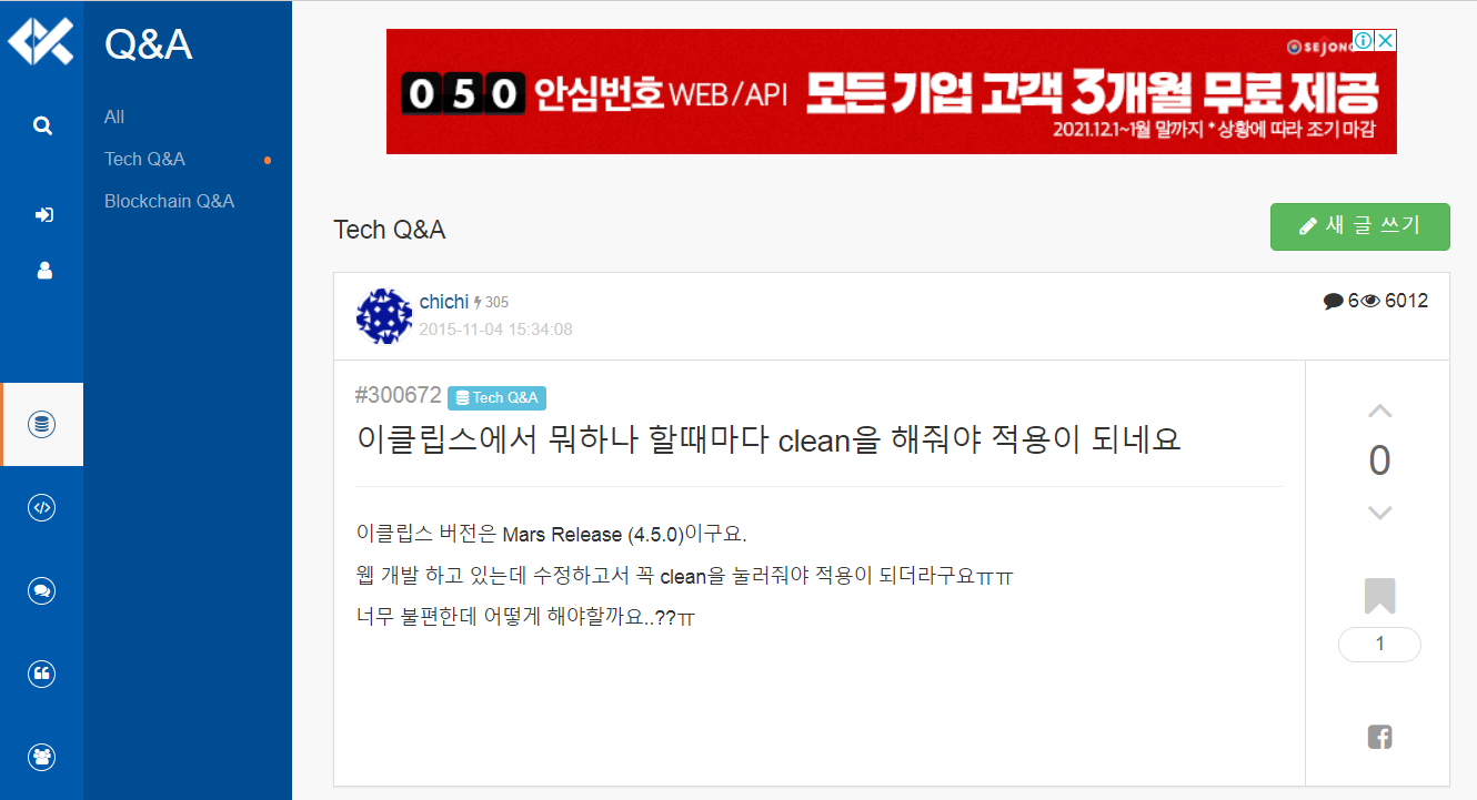 이클립스 버전은 Mars Release (4.5.0)이구요. 웹 개발 하고 있는데 수정하고서 꼭 clean을 눌러줘야 적용이 되더라구요ㅠㅠ 너무 불편한데 어떻게 해야할까요..??ㅠ