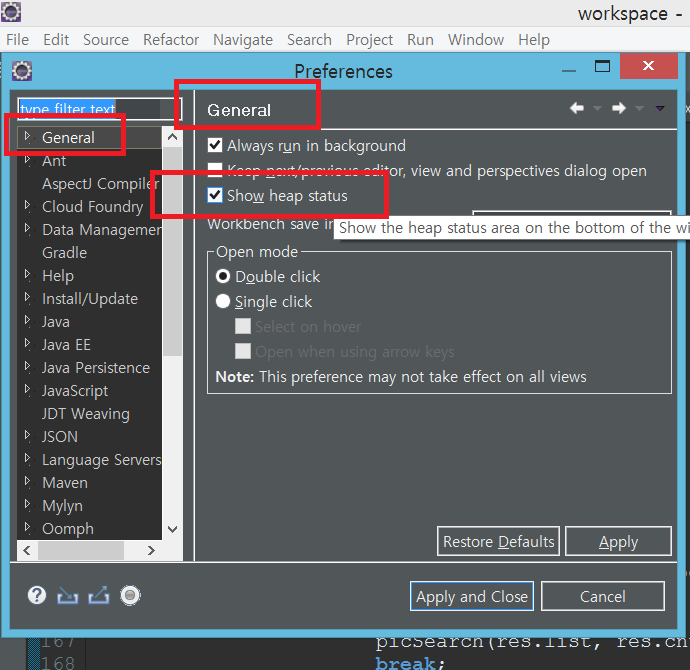 이클립스/Eclipse 메모리 Heap 영역 늘리기 이클립스를 쓰다보면 자바의 기본 메모리 설정만으로는 부족할때가 있습니다. 이클립스 실행시에 자바 메모리 설정하는 부분은 이클립스가 설치되어 있