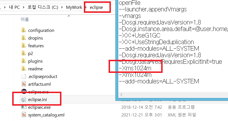 이클립스 파일로 가서 eclipse.ini 에서