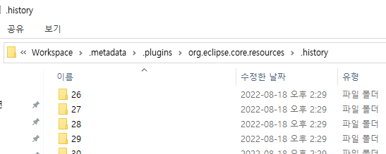이클립스 local histroy 사용법 및 저장위치