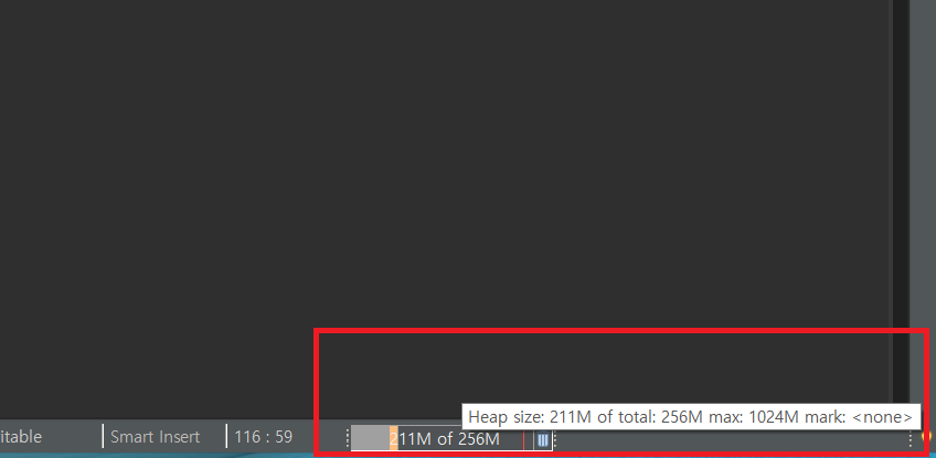 이클립스 하단에 heap 메모리 용량이 표시되어 있다.