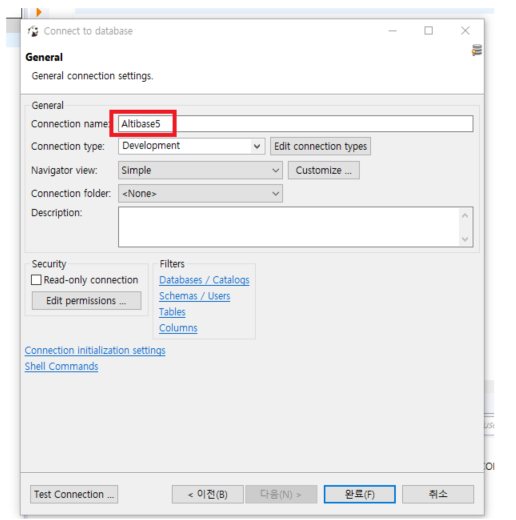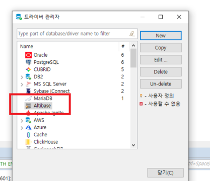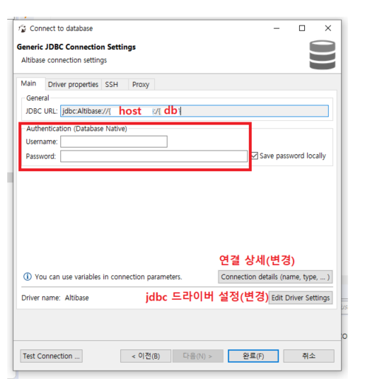 - Driver Name : Altibase (연결 db 이름 지정, 변경 가능)