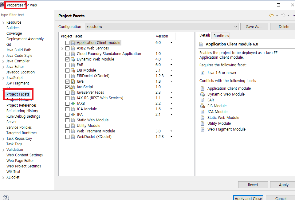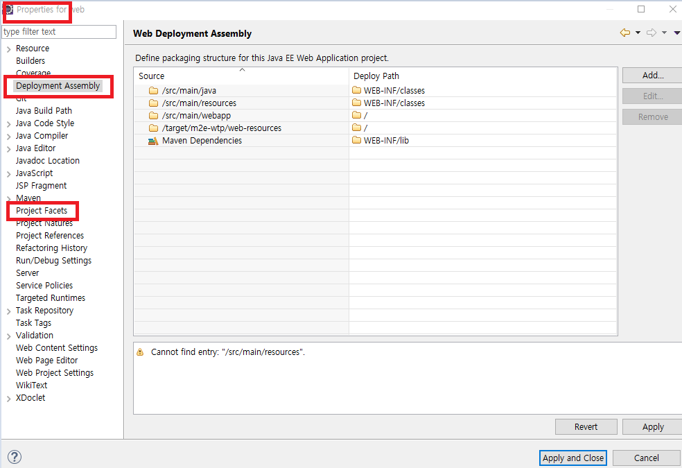 Project Fasets 에서 설정한 거 확인 => Deployment Assembly