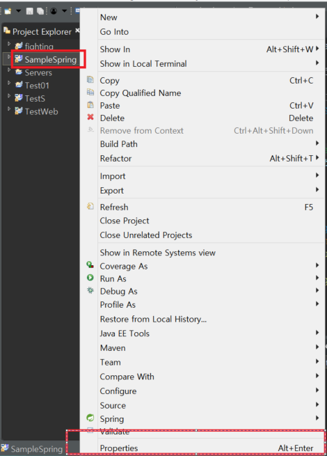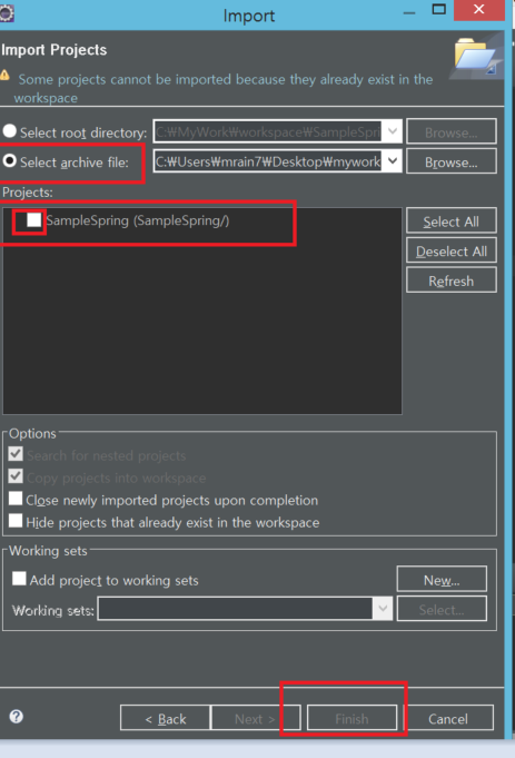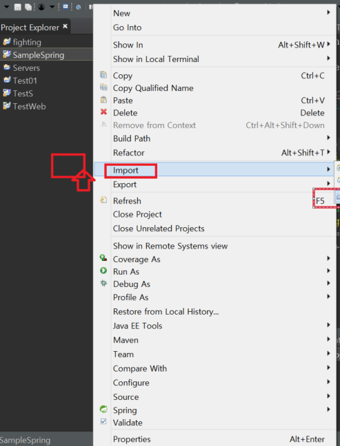 프로젝트 부분 사이드바 마우스 우클릭 후 import
