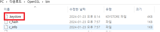 bin 안의 경로에 인증서 파일과 개인키를 넣고