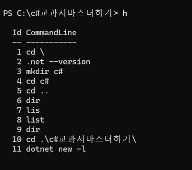 히스토리 보기 F7 / 파워쉘에서는 h 명령어
