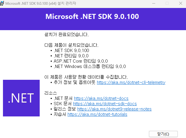 Visual Studio 2019 설치하면 .NET도 설치됨.